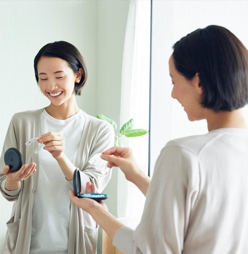 インビザライン🄬は、取り外し可能なマウスピース・アライナーを使う矯正方法なので、食事の際や食後のブラッシングは今まで通り行えます。※2マウスピースは7日~10日で交換